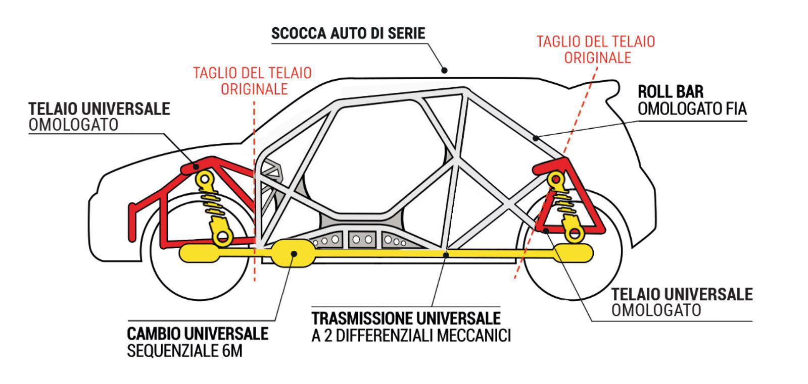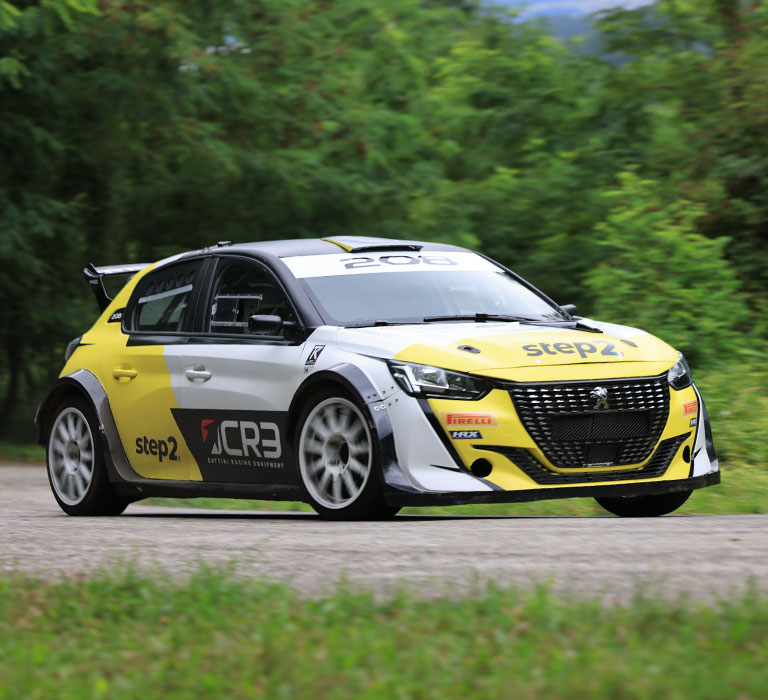 Le Step2 sono auto da competizione con motore 4cilindri 1600 turbo da 300cv in posizione longitudinale. Montano trasmissione integrale 3MO a 2 differenziali meccanici, cambio 6m sequenziale. Totalmente riprogettate e fabbricate in Italia usando SOLO componenti motorsport. Hanno prestazioni molto vicine alle Rally2 e possono correre in tutte le gare, incluse quelle FIA.